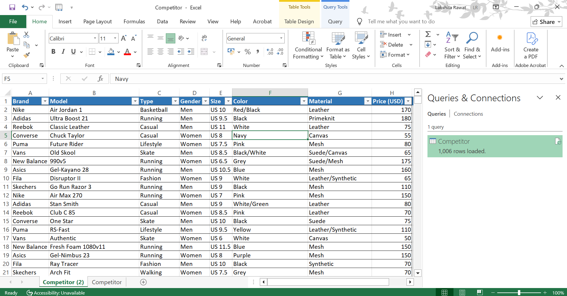 - Brand – The company name (e.g., Puma, Adidas, Nike, Reebok)